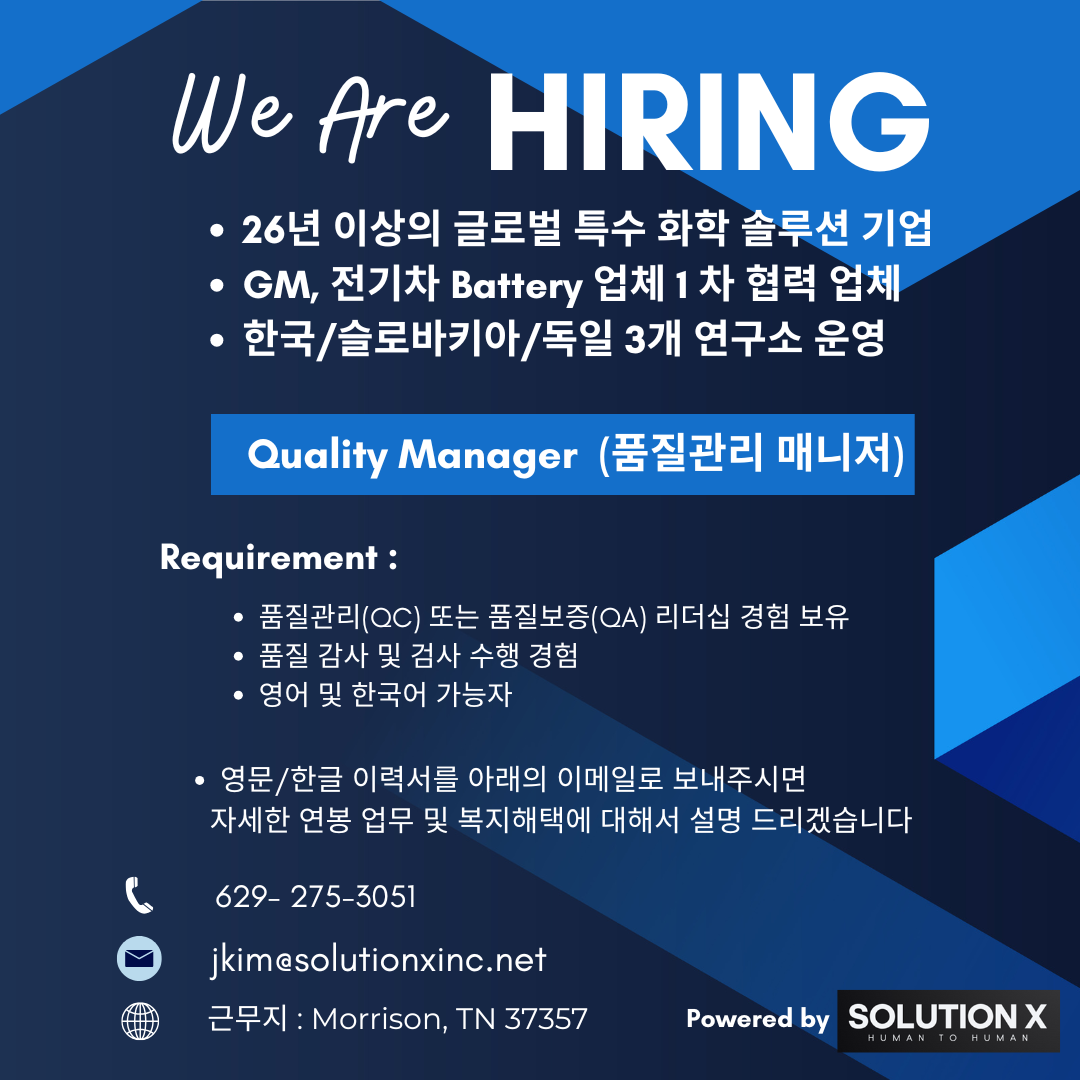 [2차전지/ EV Battery] 엔지니어 구인 - OPT 지원 가능